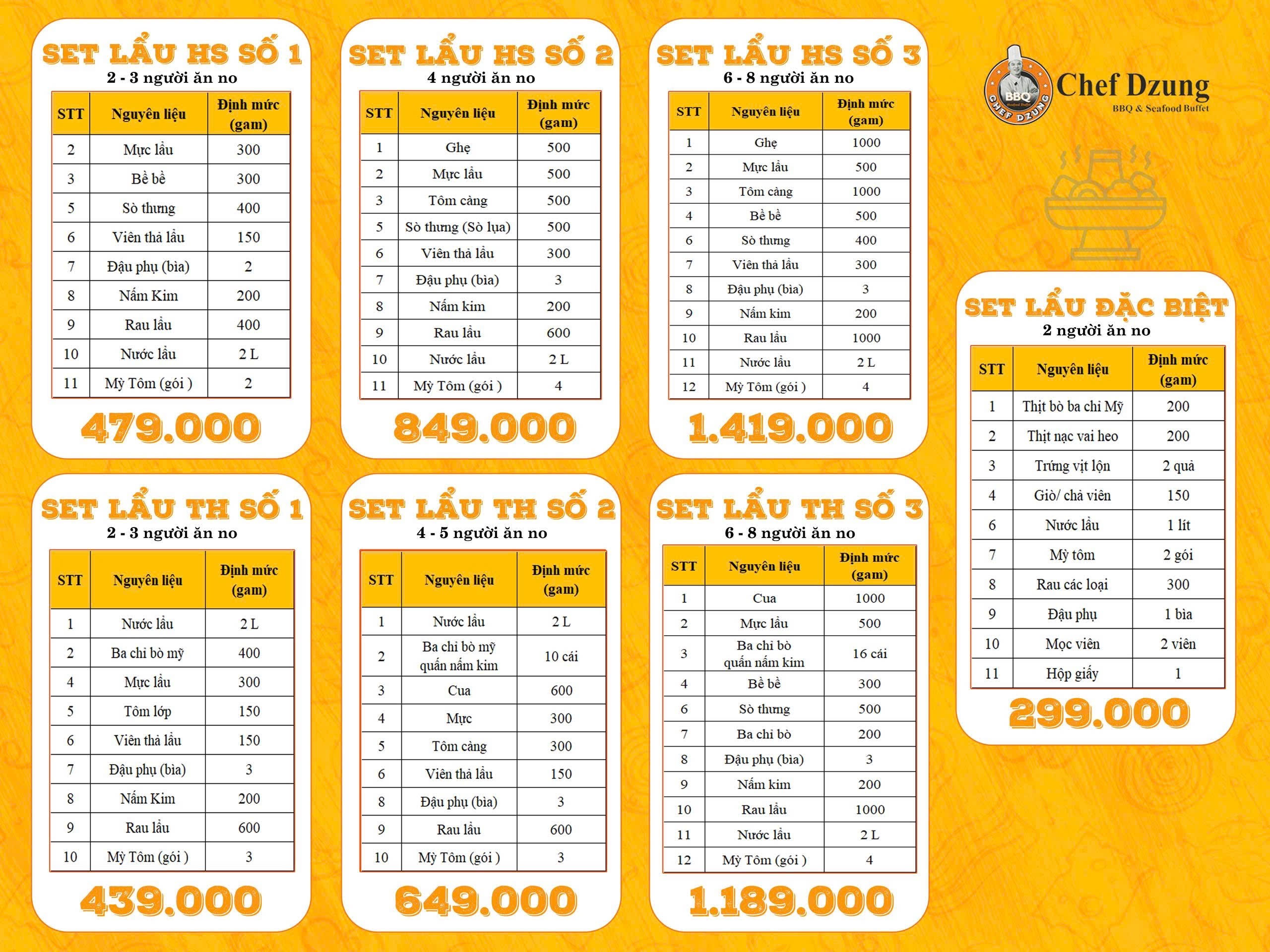 Định lượng các Set lẩu